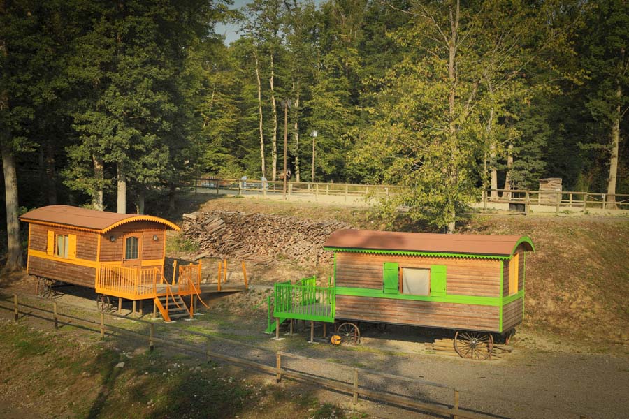 Nous vous invitons à partager une expérience hors du commun pour une nuitée étonnante à bord d’une de nos roulottes authentiques et surprenantes. Au sein de la ferme équestre du Menil Saint Michel, profitez d’une roulotte spacieuse et ingénieusement équipée (salle de bain, WC, cuisine avec four frigo et lave-vaisselle) en toute intimité sur les surplombs de la ferme dominant parcs et forêts, panorama d’une nature à la fois accueillante et sauvage. Ne manquez pas les extraordinaires aurores et crépuscules confortablement installé sur votre terrasse privative. Nous nous tenons à votre disposition sur place pour la livraison du petit déjeuner et vous informer sur les différentes activités possibles.