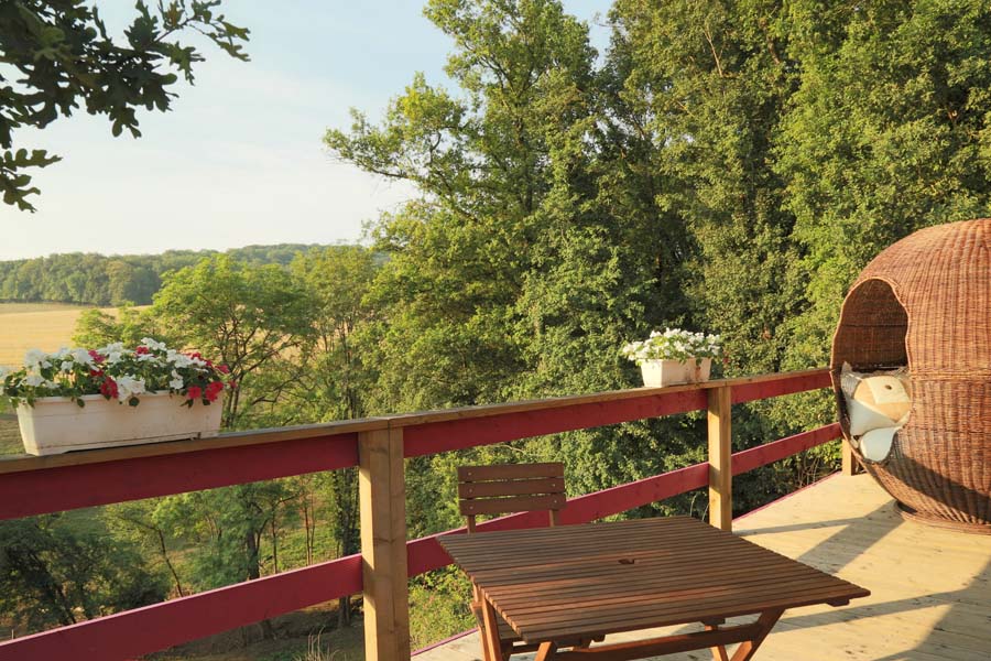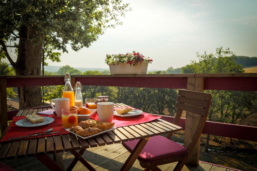 Munie d'un grand cocon en terrasse la roulotte Cocon vous permettra de passer un moment de farniente avec vue sur la nature champêtre et les parcs à chevaux.
