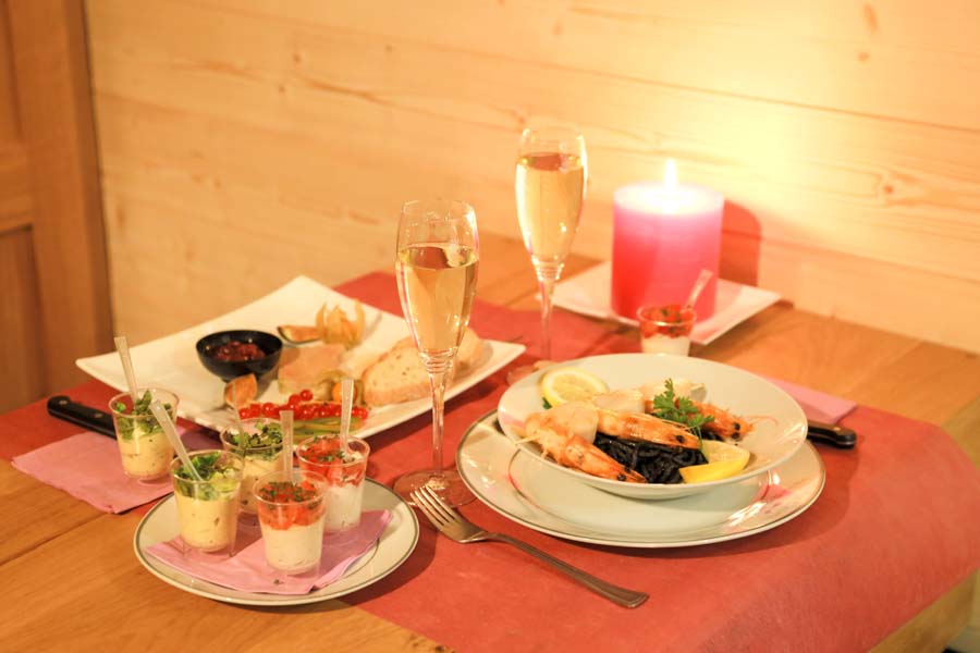 - d'un coin cuisine composé d'un mini-four, un lave-vaisselle, 2 plaques de cuisson, un réfrigérateur et une mini-cave à vin.
